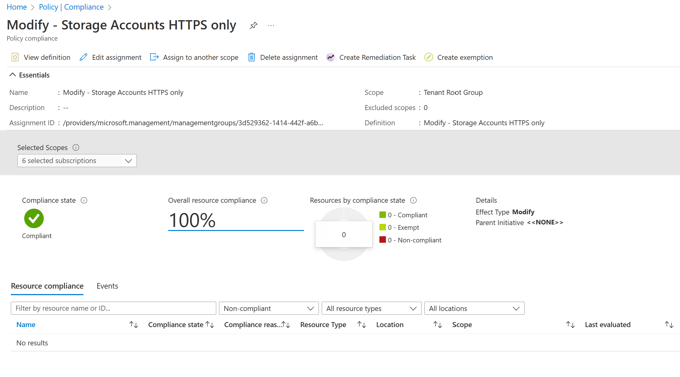 You can also view the policy again and see that our storage account is compliant.