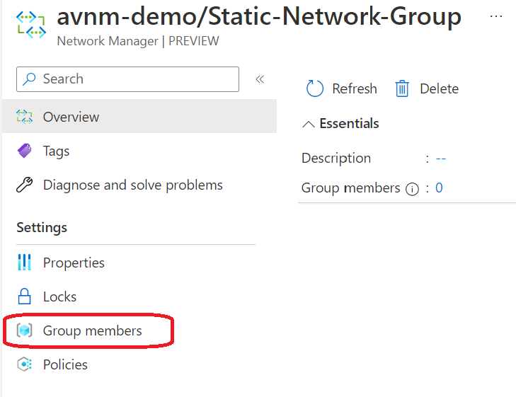2. Select our static network group and click group members.