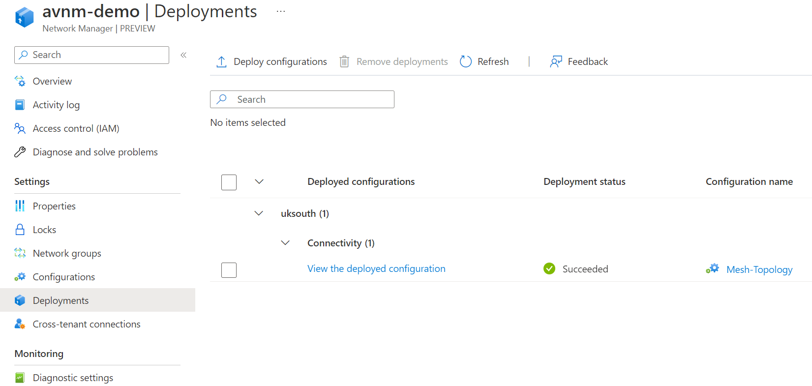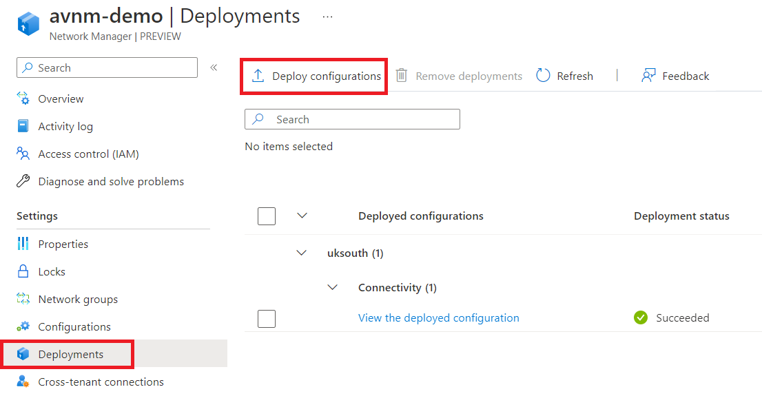 The configuration should be available to view; remember, this does not mean it's been deployed. We still need to go to deployments to push this out to our virtual networks.
