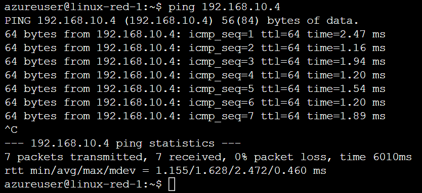 Let's see if we can ping 192.168.10.4 from the virtual machine 192.168.1.4 in vnet-1 to confirm that the connectivity configuration is complete.