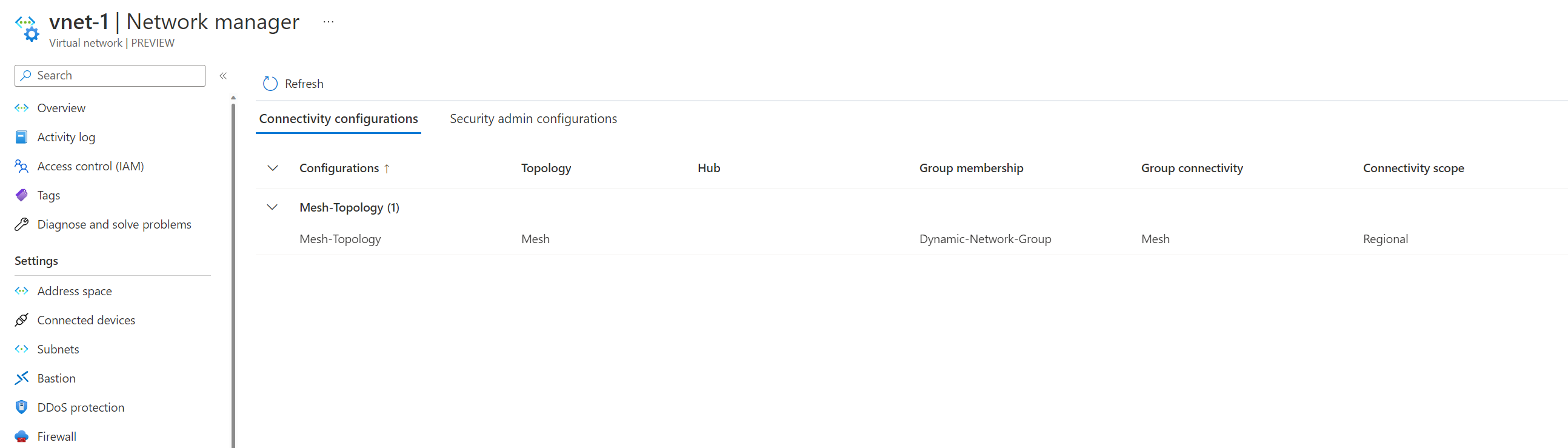Oh wait... we can't see any peers? How is this working? Don't worry. It uses virtual network peering under the hood. We can see the connectivity configuration applied if you click on the network manager.