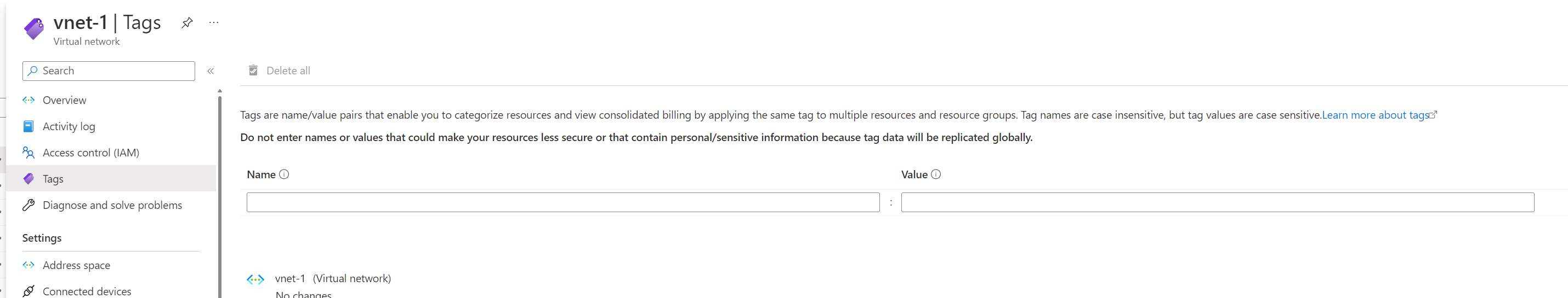 We've removed the tag on vnet-1.