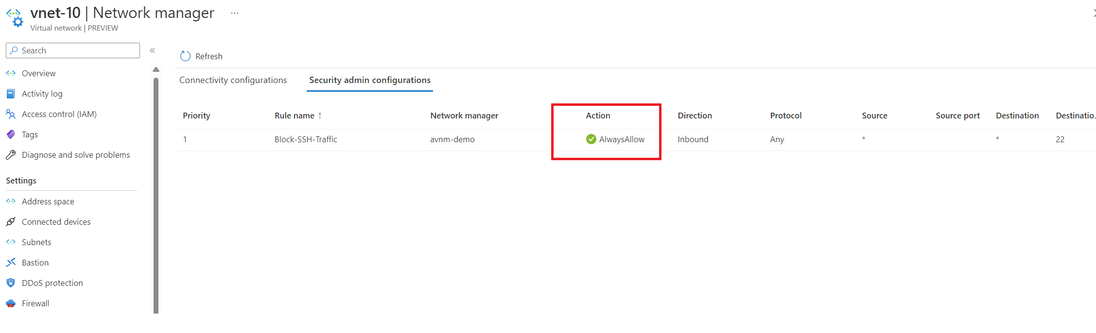 What if we change the AVNM security configuration again from Allow to Always Allow instead?