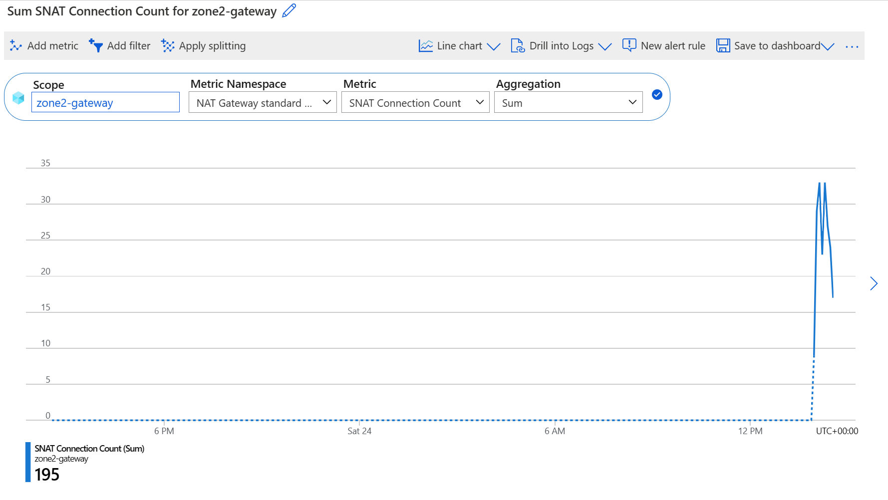 Microsoft provides out-of-the-box metrics that can be used to monitor the NAT Gateway. These include the following.