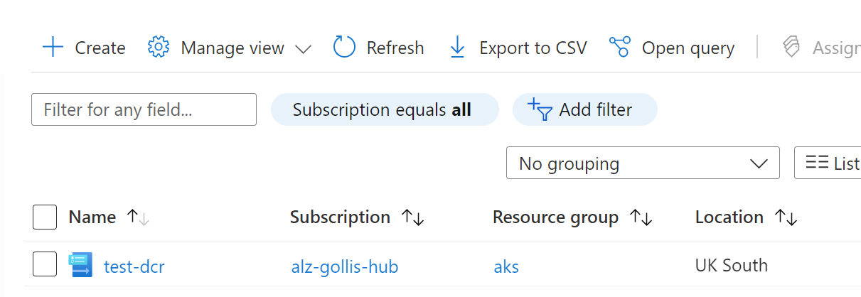 Once you are happy, click apply and save the changes. This will create a data collection rule for you and be linked to the workspace. You can view the data collection rule in the portal.