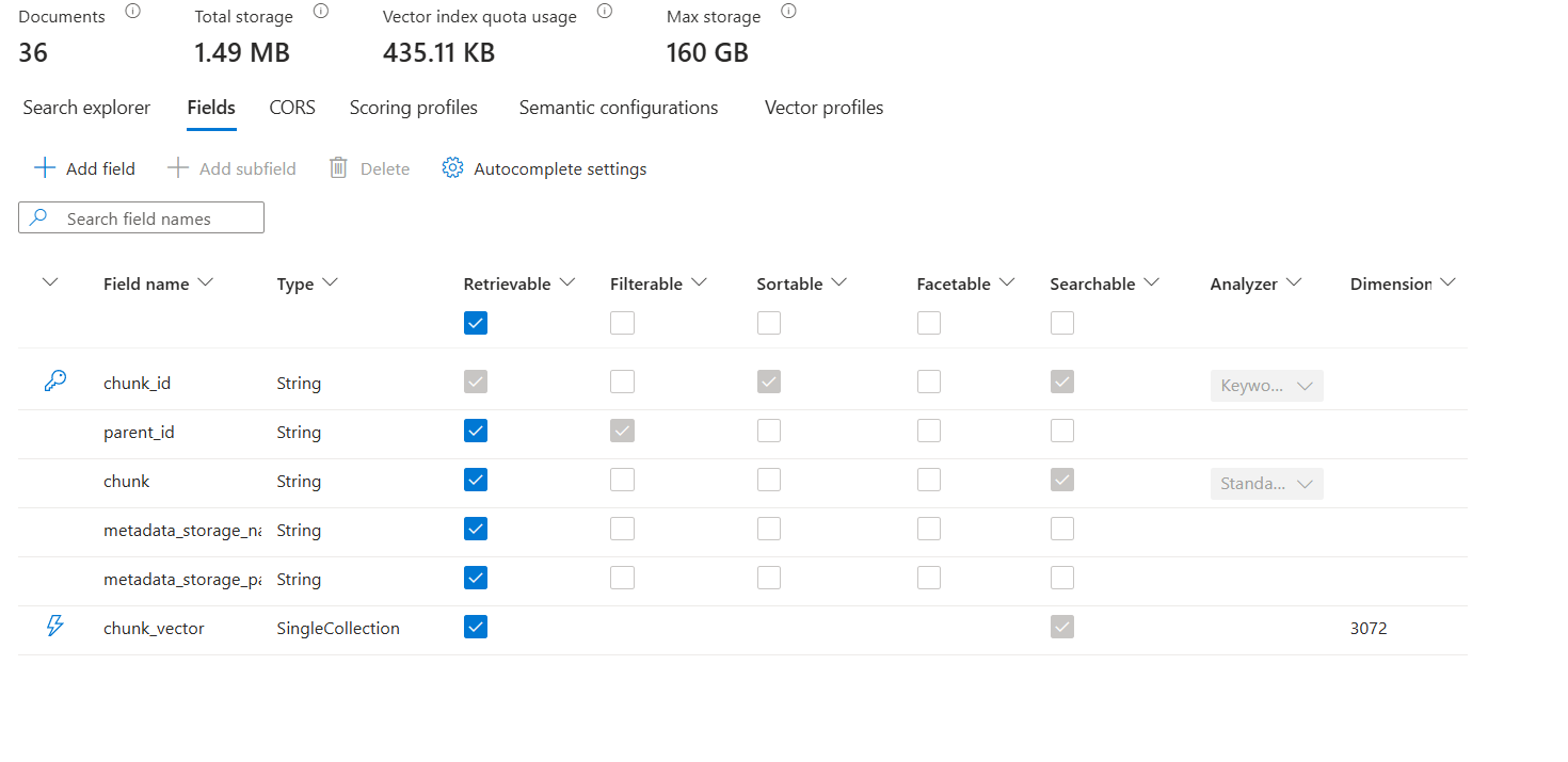 Because we now have a one-to-many relationship in our index, we need to use index projections rather than output field mappings in the indexer. For example, one document is generating multiple records as a result of chunking.