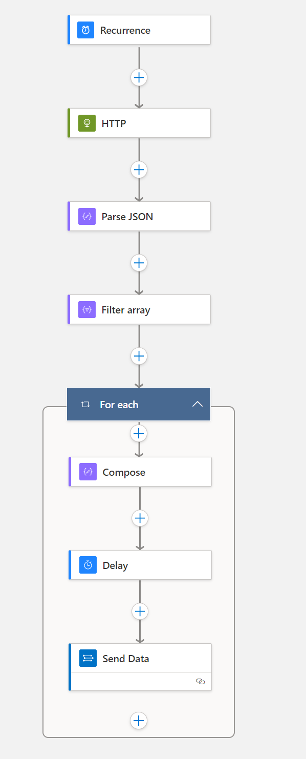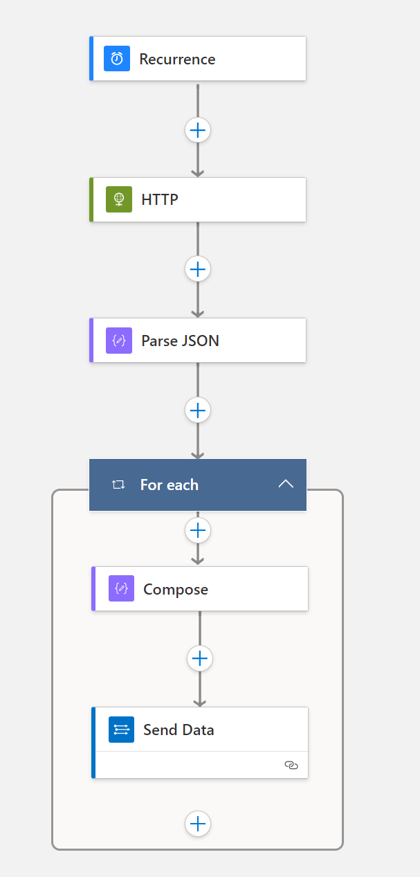 This workflow is set on a schedule that runs every 24 hours and will ingest the same data. The workflow is below.