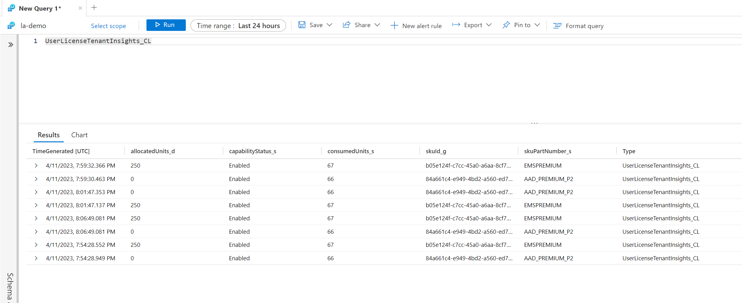 You might be asking why we need this information. When we join the data with the other tables, we can use familiar names (Such as Azure AD P2) as part of the query to provide more helpful information to the end user. This is heavily used in the supporting Azure Workbook that is part of this solution.