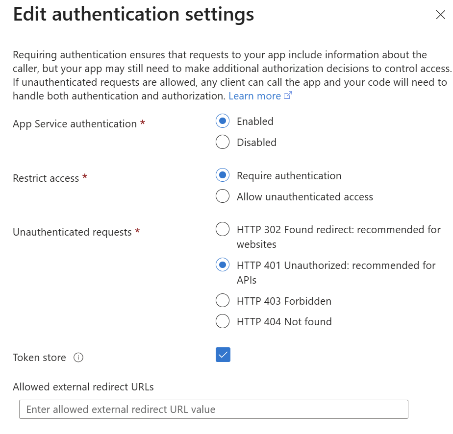 - The allowed token audiences are configured for you automatically when you enable Microsoft authentication.
